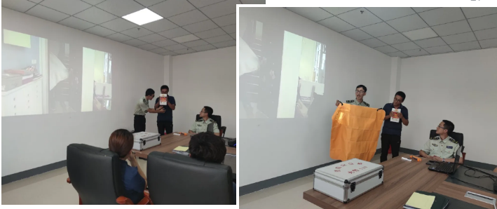 培訓過程中,防火中心工作人員詳細的介紹了滅火毯、消防過濾式自救呼吸器、帶聲光報警功能的強光手電等消防器材的用途和使用,并向公司員工現場展示其正確使用方法,讓大家對火災和消防有了更深入的了解。