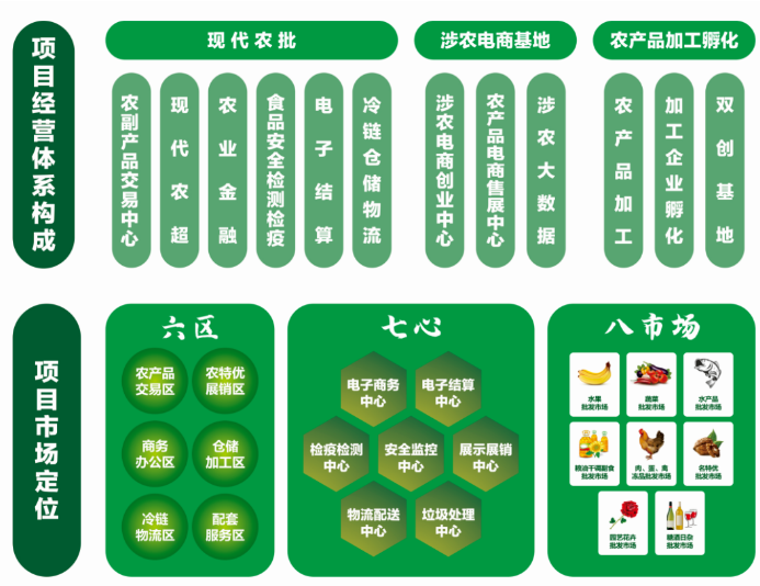 孝義農產品大市場位于城市主干道永安路與崇賢街交匯處,項目總投資10億元,占地面積約220畝,總建筑面積約17萬㎡,涵蓋了農產品交易區、農特優展銷區、商務辦公區、倉儲加工區、冷鏈物流區、配套服務區六大功能區。項目建成后,將成為集農產品展覽交易、電子商務、電子結算、加工配送、凈菜加工、冷鏈物流、質量檢測、信息發布、創業孵化、金融服務、休閑娛樂等功能為一體的現代化大型綜合服務平臺。