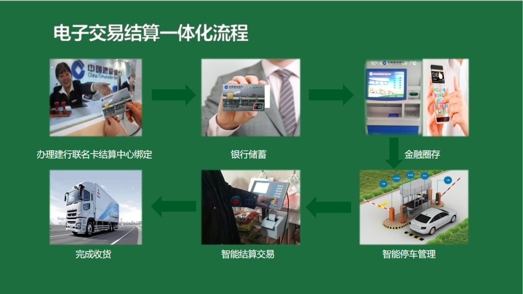 最后,電子交易結算一體化,通過以交易結算為切入點,以線上APP和銀行聯名卡為載體,做到農產品批發市場商品溯源,入場管理,電子結算交易,出場管理,360度一體化管理。