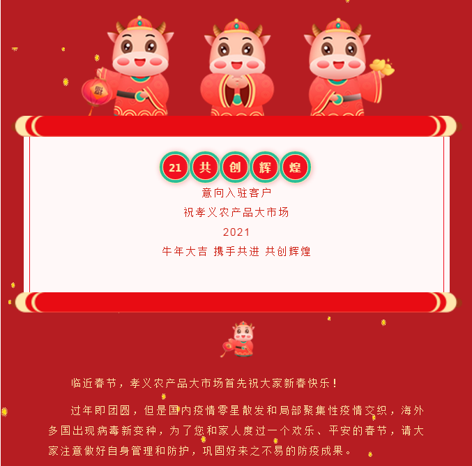 就地過年保安康,眾誠抗疫力量強丨孝義農產品大市場祝外地過年的人們牛年吉祥!