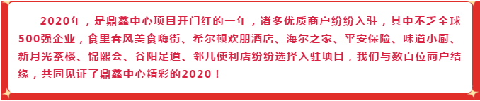 在即將告別鼠年,迎來牛年之際,諸多入駐商戶也紛紛表達了自己對于入駐鼎鑫中心的感受,并送上了自己最真摯的新春祝福!