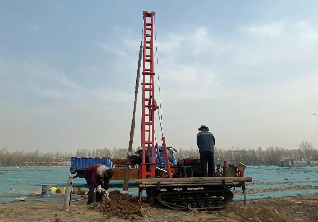 地質(zhì)勘察過程采用機(jī)鉆對(duì)地下土層進(jìn)行采樣,數(shù)據(jù)分析,評(píng)估地下土層的承載力。