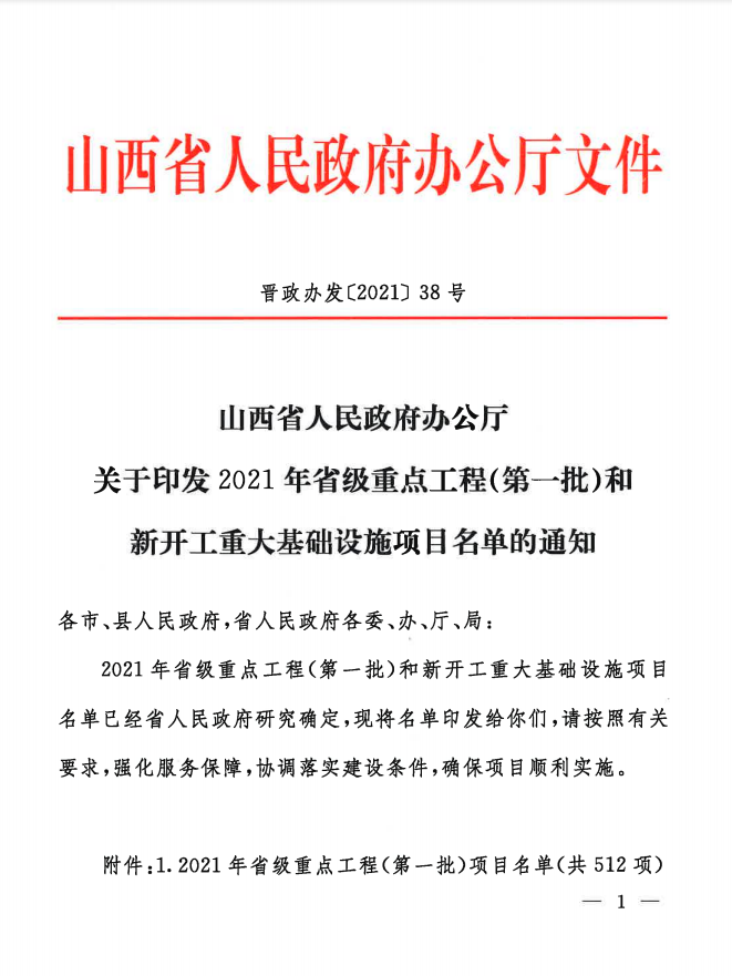 2021年省級重點工程