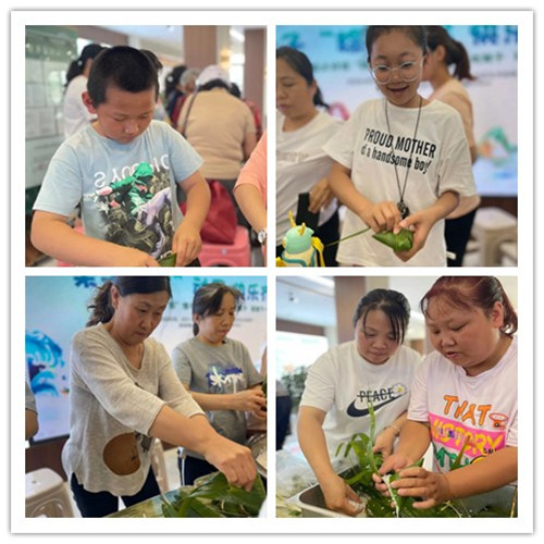 6月13日下午三點,參加活動的大、小朋友們接踵而至,大朋友們輕車熟路,手到擒來,將粽葉挽成漏斗狀、放大棗、封口綁粽繩,而毫無經驗的小朋友們,在工作人員一對一的教學指導下,包的有模有樣,越來越嫻熟,大家齊心協力為糯米穿上了美麗新衣!