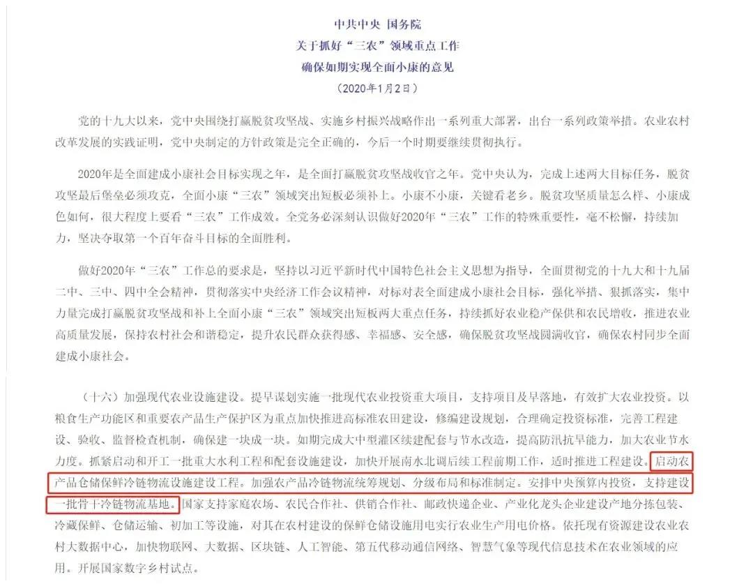 進入21世紀以來, 我國越來越重視農批市場建設,特別是以農批市場為基礎的冷鏈促進政策,更是穩定“霸榜”每年的中央一號文件。