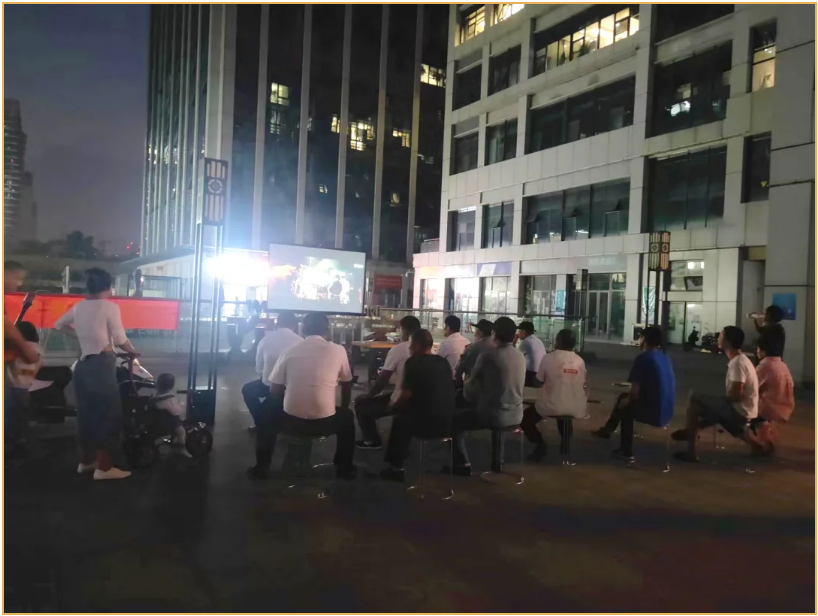 9月1日晚上19:00,觀影活動(dòng)正式開始,眾多住戶、商戶們攜親友陸續(xù)來到觀影現(xiàn)場(chǎng)有序的排隊(duì)等候。燈光漸暗,影片拉開序幕,《八佰》正式開影,隨著故事漸入高潮,每個(gè)人的心弦也被緊緊扣住,跟隨片中人物或激動(dòng)、或緊張、或亢奮、或喜悅, 現(xiàn)場(chǎng)人頭攢動(dòng)、熱情高漲!