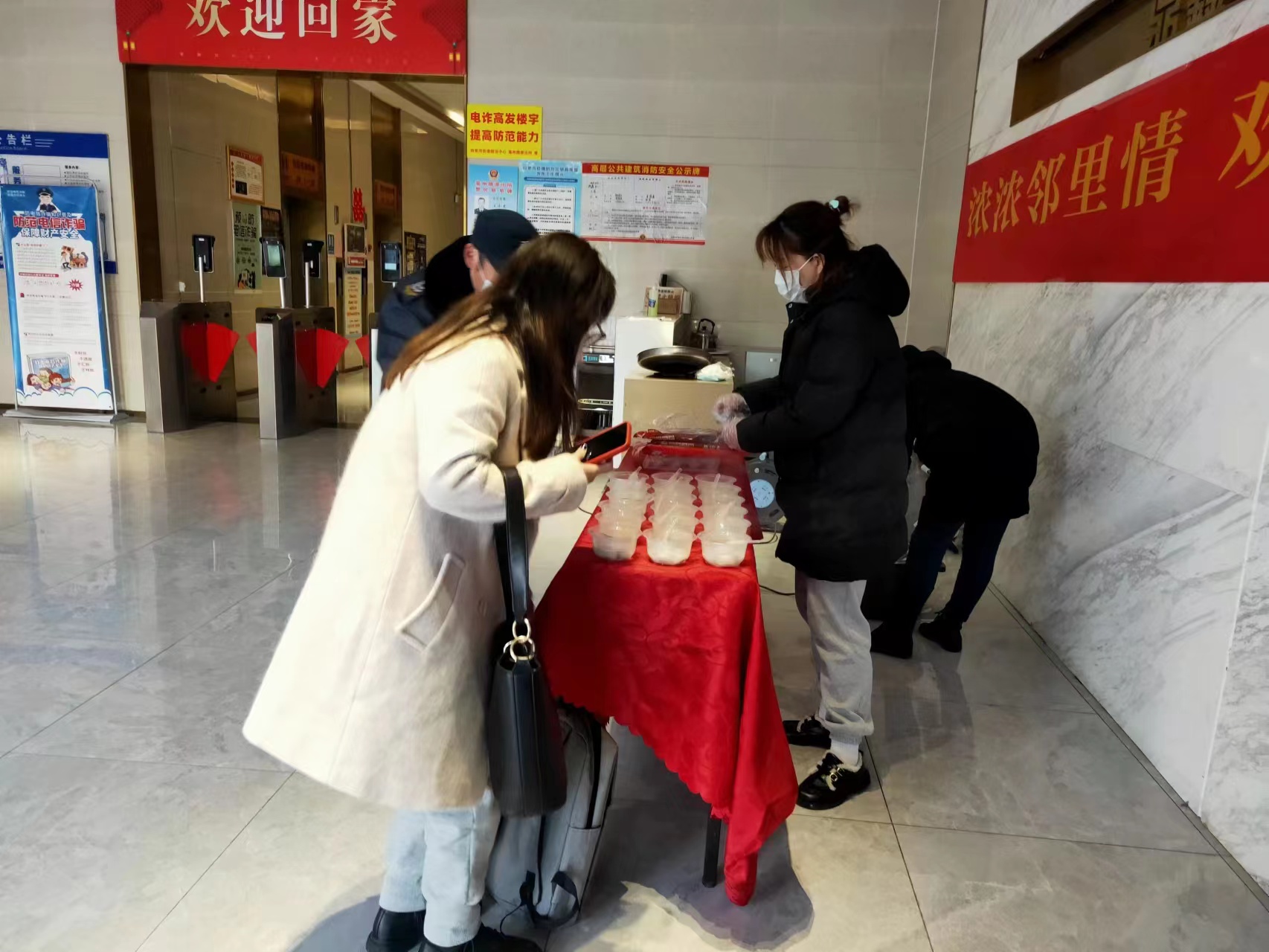 活動現場,鼎鑫中心佳旭物業服務人員為業主精心準備了美味的湯圓,親手將一份份“圓墩墩”送到業主們的手里,湯圓香濃,顆顆都包含著滿滿的祝福。 空氣中彌漫著的香甜氣息吸引了許多業主前來,大家臉上滿是笑容,品嘗著湯圓,相互道一聲節日的祝福,歡聲笑語蔓延開來,現場其樂融融。