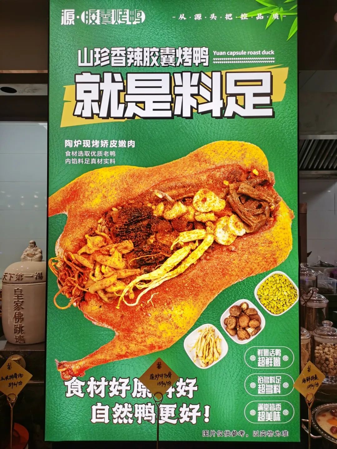 御鮮樓食府為了滿足現代人的口味和營養需求,在保留老徽州風味菜的同時也開始致力于研究出一種可以兼容多種味型、接受度更高的菜品。特推出一道風味獨特的源自韓國的特色烤鴨——源·膠囊烤鴨,口感,皮嬌肉嫩,酥爛脫骨,滿口留香,零添加劑!采用傳統蔬菜和香辛料進行腌制入味,鴨肚中放入蓮子,枸杞,大棗等滋補原料,隔罐高溫烤制,避免明火直接烤制產生的有害物質,讓鴨肉與滋補原料充分融合滋補養生營養價值高,是一款男女老幼最佳美味。