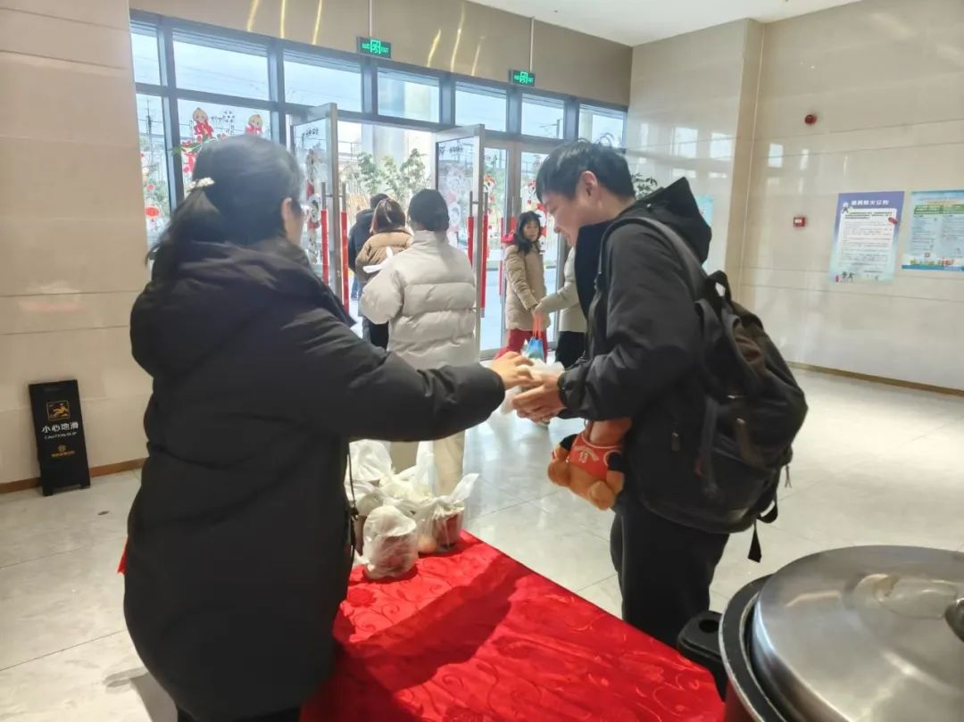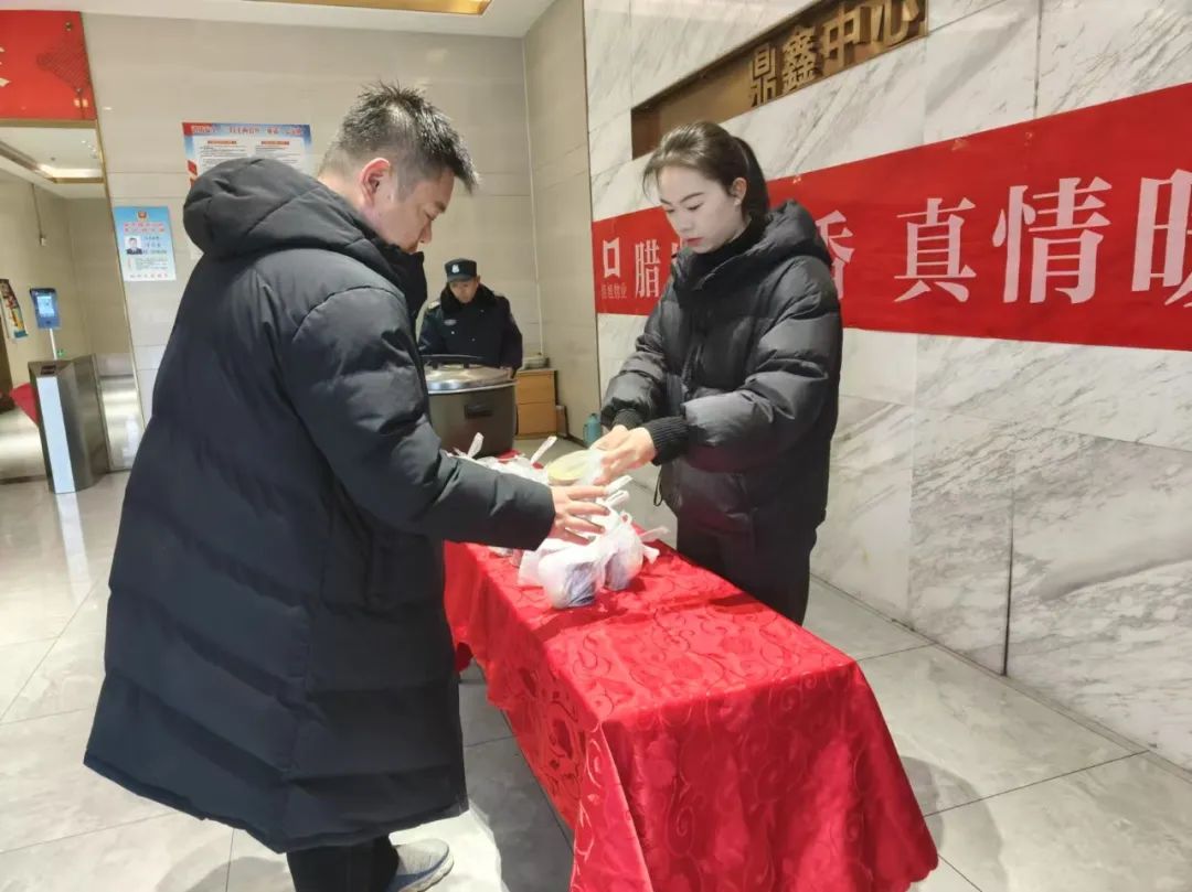 2025 年1月7日,臘八節當天,鼎鑫中心 A 座大廳內洋溢著溫暖與歡樂。佳旭物業精心籌備的 “暖心送粥 + 雞蛋” 活動在這里溫情上演,為每一位路過的業主送上了一份濃濃的節日關懷。