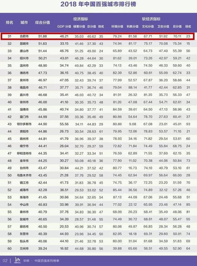 在新鮮出爐的2018年中國百強城市排行榜中: