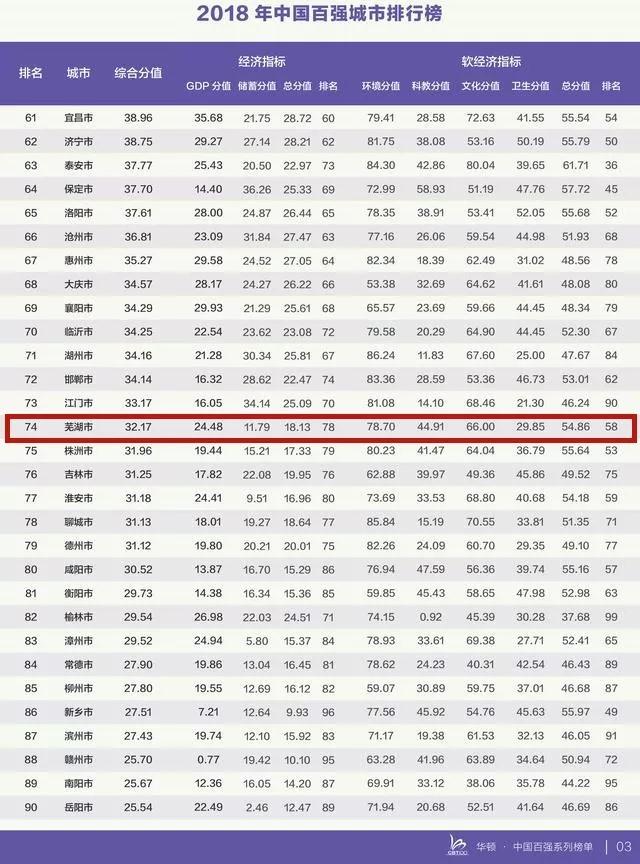 這是華頓經濟研究院連續第四年編制發布“中國百強城市排行榜”數據。中國百強城市排行榜由經濟和非經濟(軟經濟)兩大系列指標綜合而成,數據來源于國家統計局。其中,經濟指標由GDP(國內生產總值)和居民儲蓄兩部分構成,占比61.8%,非經濟(軟經濟)指標由科教、文化、衛生、生態環境四部分構成,占比38.2%。據悉,今年是華頓經濟研究院連續第四次發布年度中國百強城市排行榜。