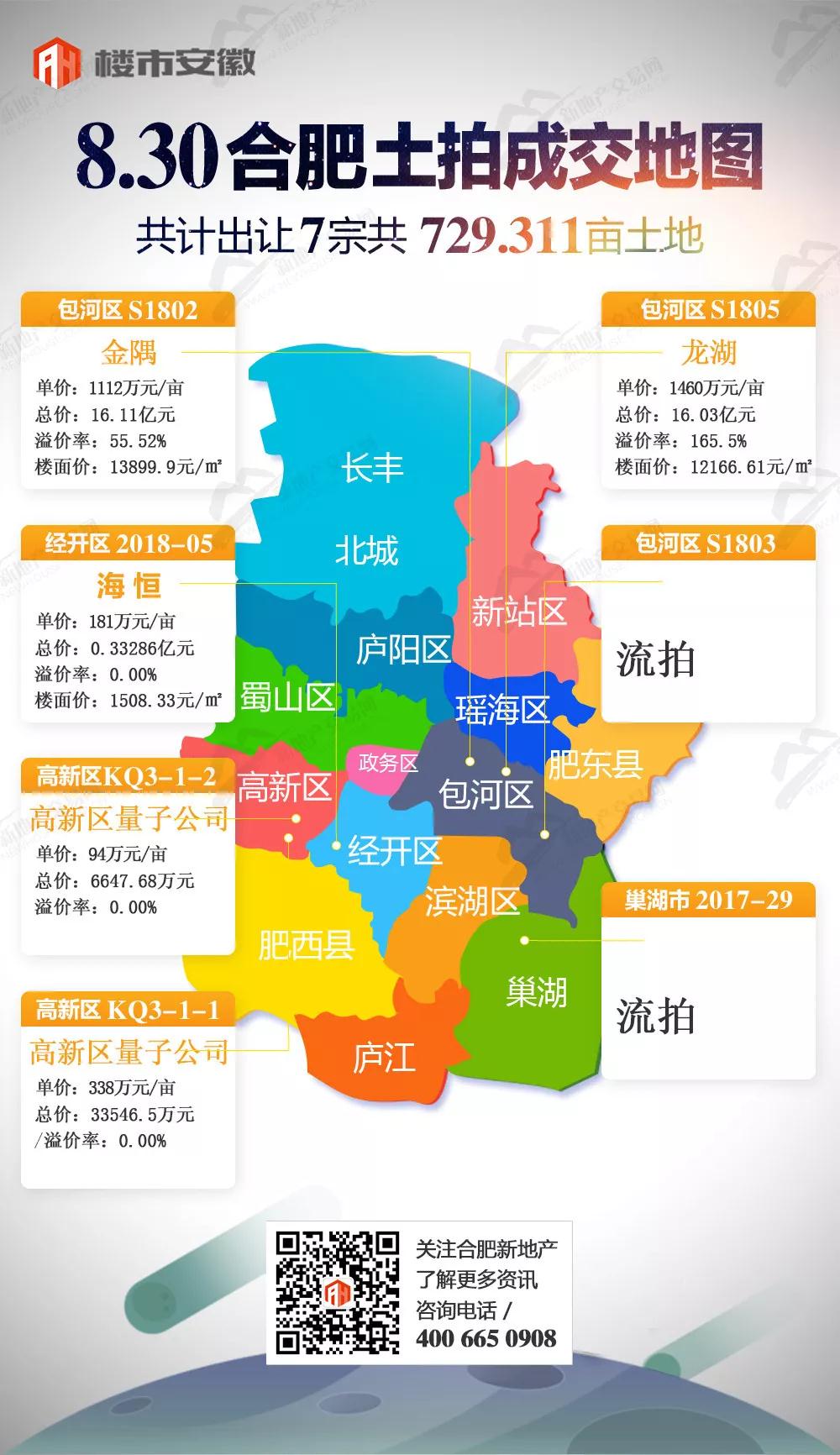 8月30日,合肥土地市場5宗443.12畝地塊成功出讓,累計攬金36億5046萬元。
