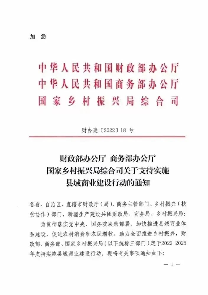 財政部、商務(wù)部、國家振興局關(guān)于支持實(shí)施縣域商業(yè)建設(shè)行動的通知