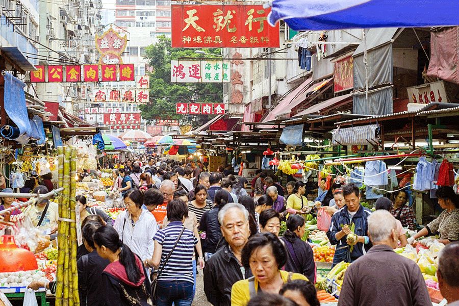 菜市場(chǎng)里,混淆著青菜的泥土味兒、海鮮的腥味,燒臘鹵味的香氣;響徹著人們的方言,各種攀談聲、砍價(jià)聲、吆喝聲……
