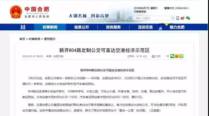 3月25日起,合肥公交推出一條新的公交線路——804路。這是繼去年621、622和537路公交線推出后,在空港經濟示范區開通的又一條新線,該路線從長崗連環新村到汽車客運西站。