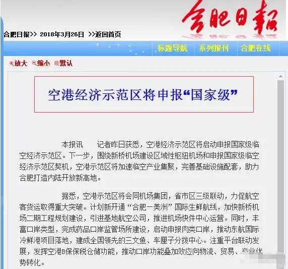 據合肥日報消息,空港即將啟動申報國際級臨空經濟示范區。